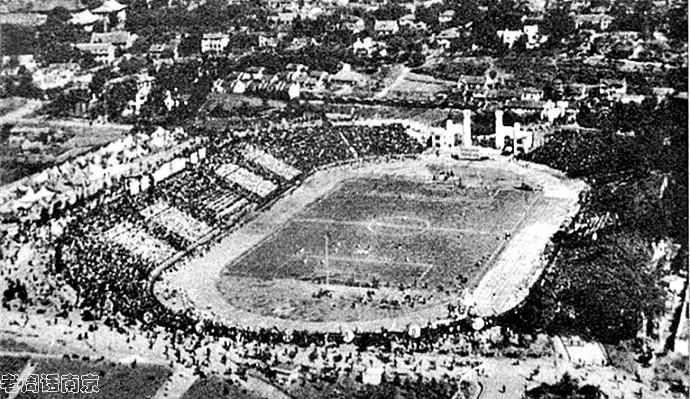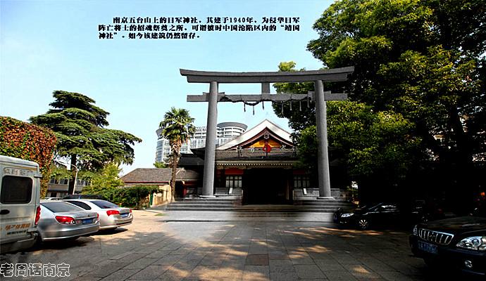 五台山 體育中心 鳥瞰 在五台山頂上,抗戰時期侵華日軍建有一個仿照東京“靖國神社”的日本神社,是日本侵華期間在中國建造的規模最大的神社,日占期每年都有陣亡日軍骨灰安放和祭祀活動。該神社1941年建成,1945年改为民國抗战阵亡将士纪念堂,1949年归江苏省体育局(原江苏省体委)使用,1992年,日本神社旧址被列入南京市文保单位,2011年,日本神社旧址升级为省级文保单位。